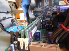 Následovalo rozebrání Pegasose, výměna pamětí a první netrpělivé zapnutí. Po prvním zapnutí však následovalo zklamání, protože počítač nenaběhl vůbec. Na rozdíl od posledních pokusů jsem však už měl zprovozněný serial debug výstup a šlo tak celkem snadno zjistit příčinu.