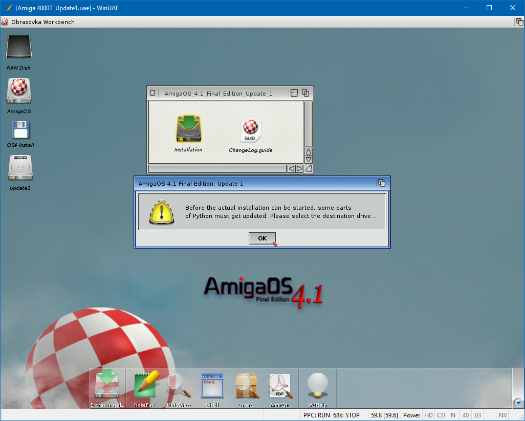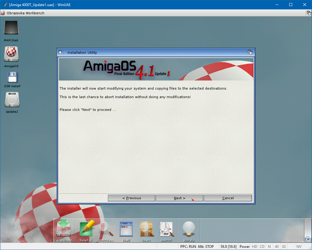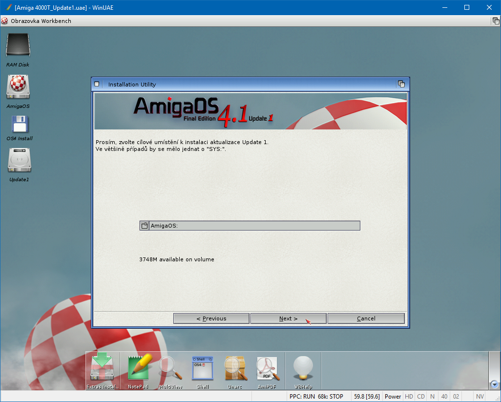 V předchozím článku jsem popisoval nastavení emulátoru WinUAE a základní instalaci operačního systému AmigaOS 4.1 Final Edition. V tomto článku se zaměřím na instalaci aktualizace Update 1 a upřesnění nastavení emulátoru pro tuto verzi. A jak jsem psal už minule, nová aktualizace přináší kromě jiného možnost navýšení FAST RAM, což byla doposud jedna z nejbolestivějších problémů nejen pod emulací. Samozřejmě řadu novinek přinesla i nová verze WinUAE, ale o tom později.