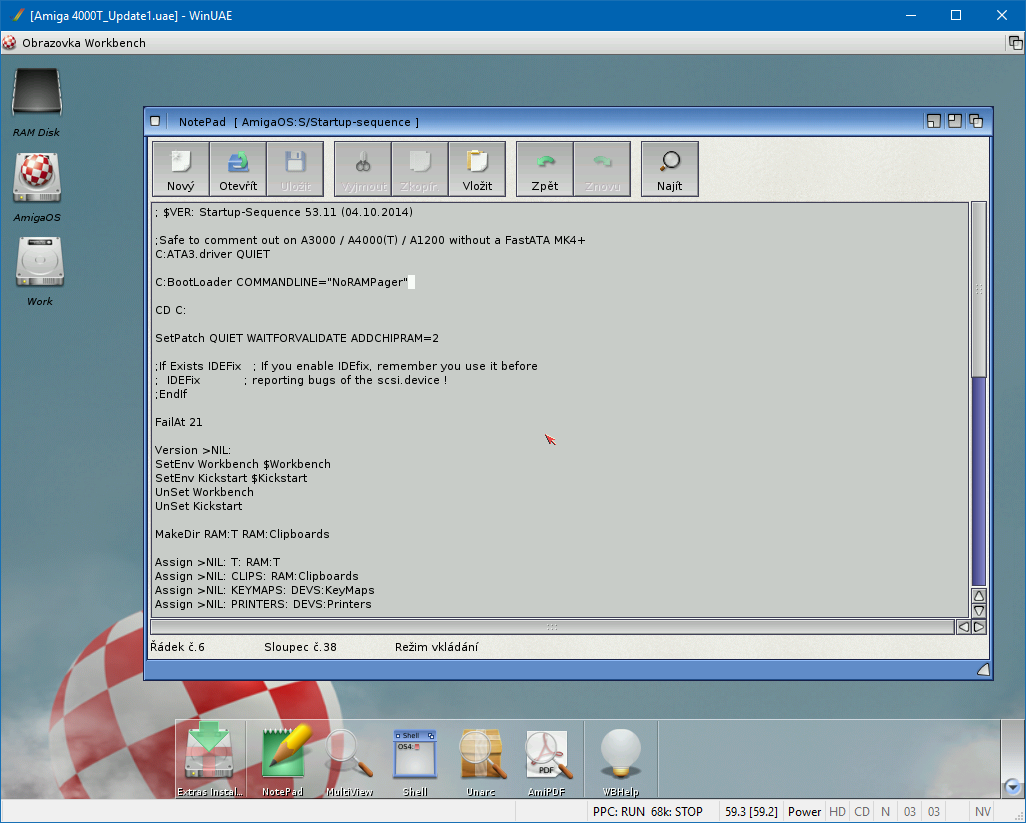 Nyní si můžeme nastavit trochu použitelnější velikost FAST RAM v systému. A protože Hypperion není takové lásky aby to udělal za nás, musíme jako první upravit soubor startup-sequence ve složce S.