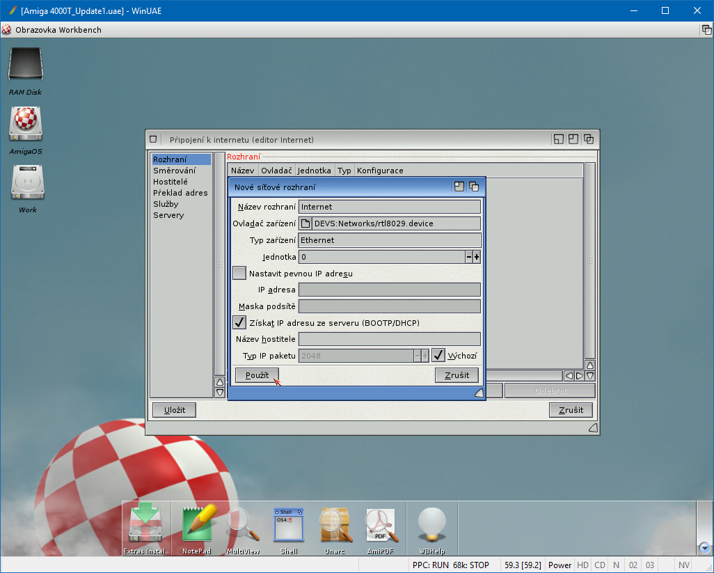 WinUAE 3.4.0 a AmigaOS 4.1 FE Update 1