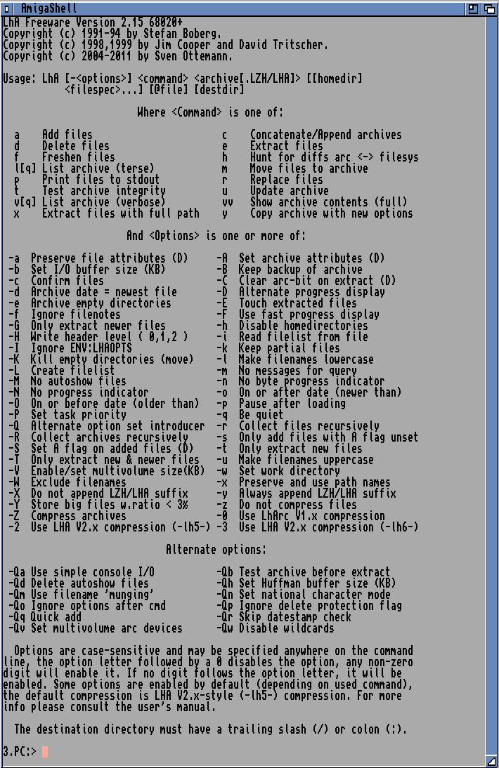 Koprimační utilitu pro Amigu si můžete stáhnout z aminetu. Jako první si tak budete muset stráhnout samoinstalační verzi Lha 2.15. Samotnou instalaci už není potřeba popisovat...