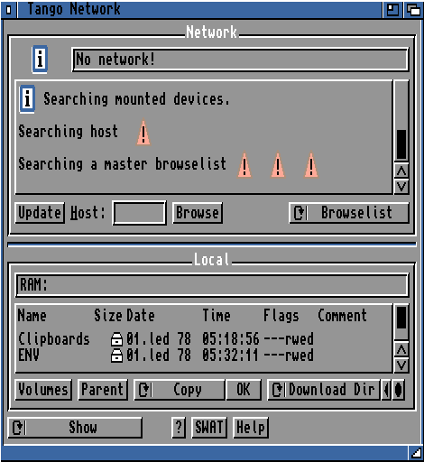 Ze všeho nejdříve se budeme věnovat nastavení programu Tango, i když lze prakticky ihned po jeho rozbalení začít prohlížet disky ostatních počítačů v síti. Ale dříve než klikneme na ikonu instalátoru, budeme muset někde na disku vytvořit složku "Samba" a vytvořit k ní stejnojmenný Assign (nejlépe do Startup-Sequence). Například: