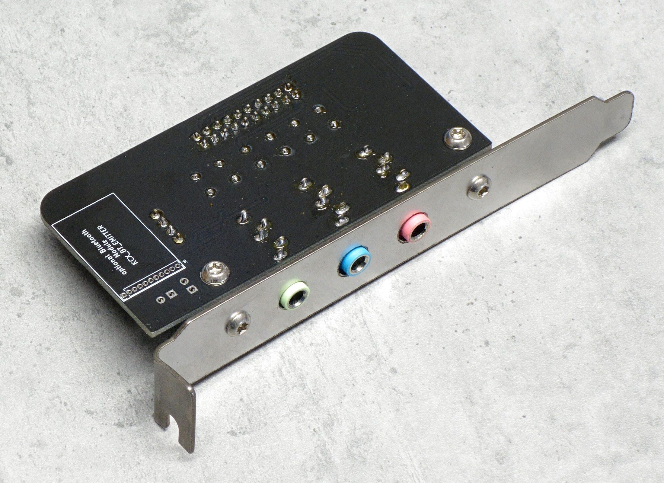 - Line-IN, Line-OUT, MIC přes jack konektory na destičce připevněné na slotové záslepce