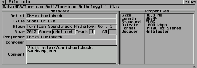File info na přehrávaný FLAC přímo z AmigaAmpu.