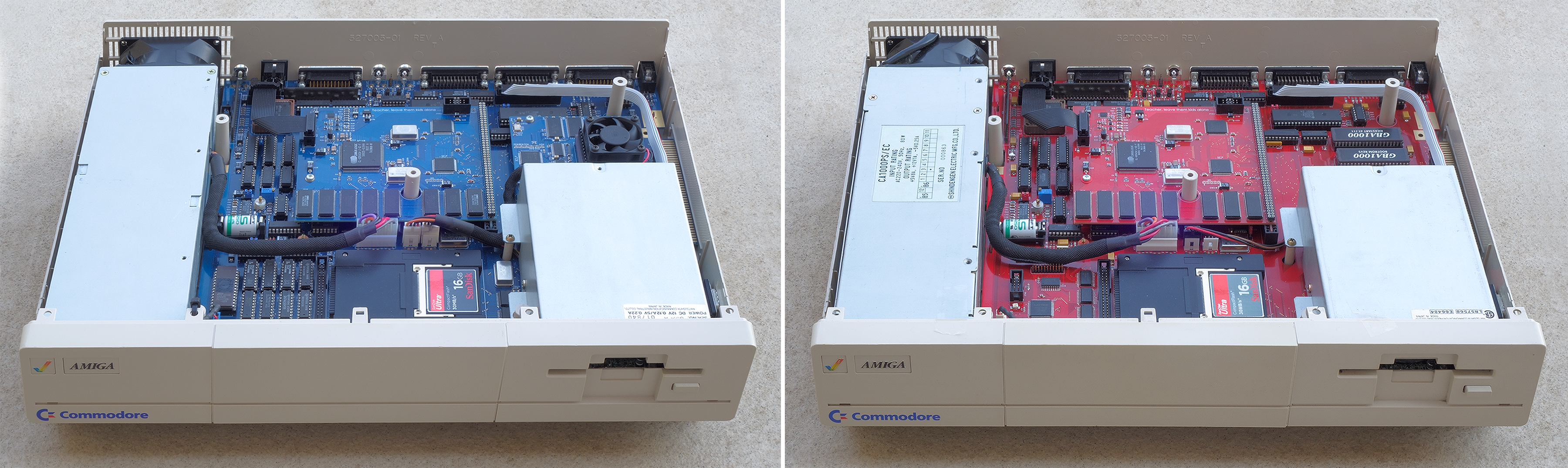 Na desce je přímo možnost napájení pro větráček, bohužel s napětím 3.3V, což dost snižuje nabídku dostupných modelů. Georg sám navrhl chlazení v podobě obdélníkové žebrované desky na které byl umístěn větráček mimo pozice pod disketovou mechanikou. Také integrovaný IDE řadič doznal změnu, původní nebyl zkrátka úplně spolehlivý v kombinacích např. HDD/CD-ROM, a tak nově bylo použito IDE z A600.
