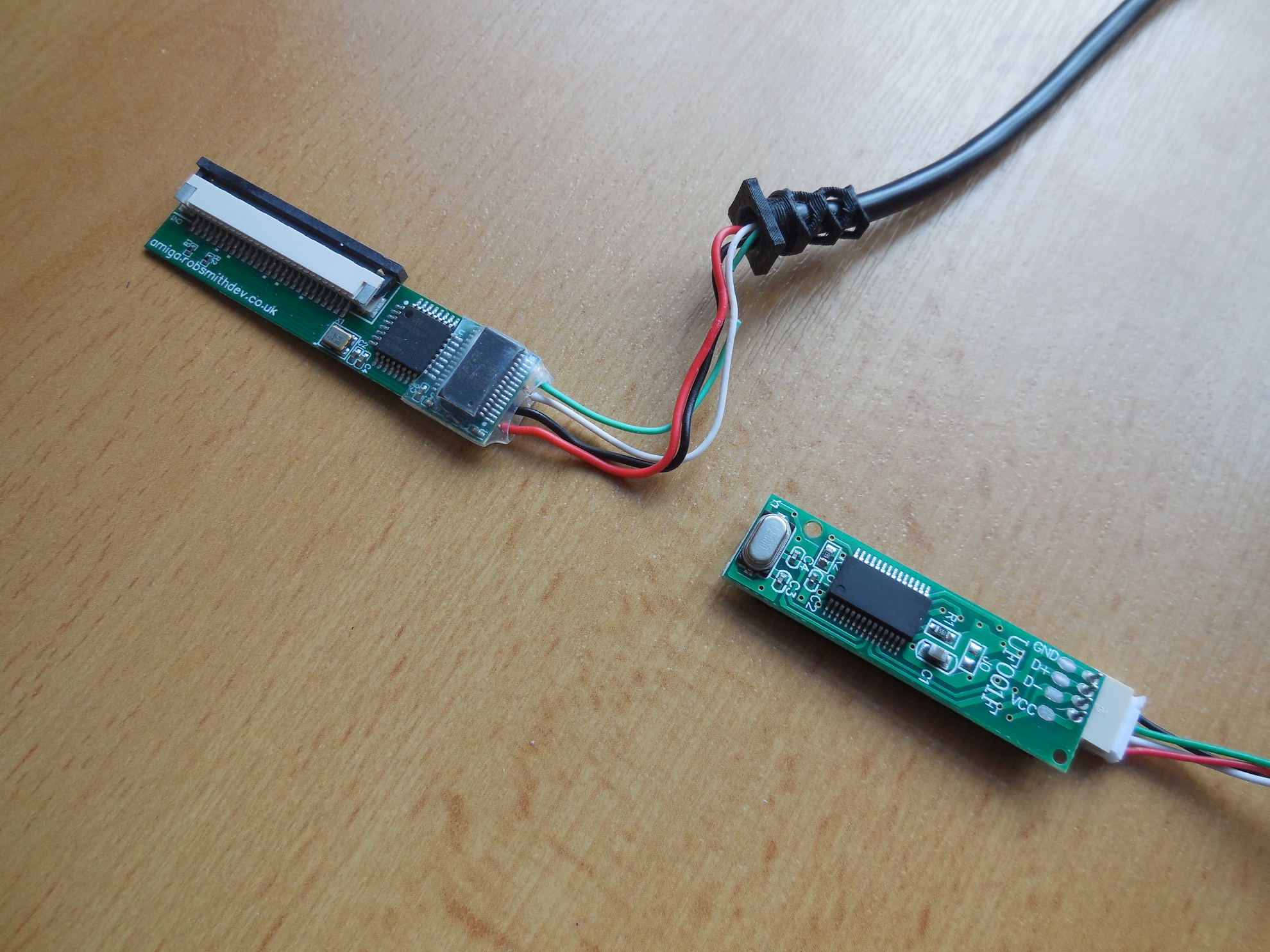 Arduino Nano se jeví jako ideální volba pro vestavbu - je malé a má rovnou USB rozhraní. Pro DrawBridge ho však čeká několik úprav: odstranění pinové lišty (kvůli místu), vypájení USB konektoru a propojky s diodou (aby se eliminoval úbytek napětí) a hlavně vyvedení signálu CTS z USB převodníku FT232R. Tento pin se připájí na analogový vstup A2 Arduina (nutno mikropájkou přímo na čip FTDI). Důvodem je, že firmware využívá signál CTS k přesnému časování během komunikace - bez této úpravy by Arduino nestíhalo plynule streamovat data z disketové hlavy. Po této drobné „operaci na srdci“ a několika dalších drobných modifikacích (odstranění regulátoru napětí, přidání pull-up rezistoru 1 kΩ na jeden signál) je Arduino připraveno. Poté se na něj napájí vodiče z konektoru mechaniky dle dokumentace. U 34-pin mechaniky stačí běžný IDC kabel (je třeba vyhnout se „přetočené“ části, používané kdysi pro druhou mechaniku B). U 26-pin slim mechaniky je zapojení trochu složitější - existují dvě varianty pinoutů, které se musí správně určit. Celkem se připojuje kolem 15 signálů: kromě napájení +5V a několika zemí jde o klasické řídicí linky disketové mechaniky (Motor On, Step, Direction, Track 0, Index, Write Gate, atd.) a datové linky (Read Data, Write Data). Důležitý je také pin Disk Change (disk change detect), který firmware využívá pro rozpoznání výměny diskety - ten je u WinUAE podpory nutné zapojit na Arduino (pin 34 mechaniky na pin 10 Arduina). K Arduinu se mechanika připojuje buď přímo drátky připájenými na kontakty, nebo přes vhodnou redukci/konektor (například u slim mechaniky lze použít FFC breakout board místo přímého pájení na flex kabel mechaniky).