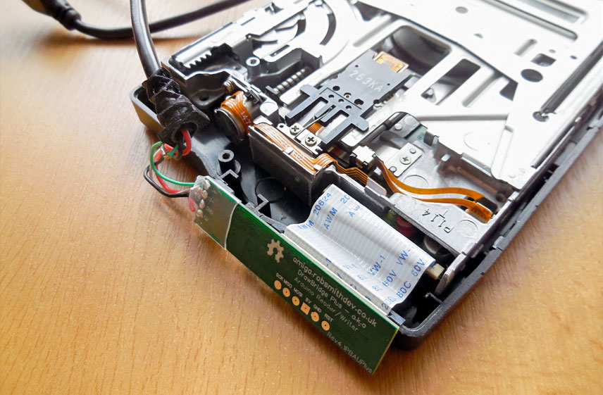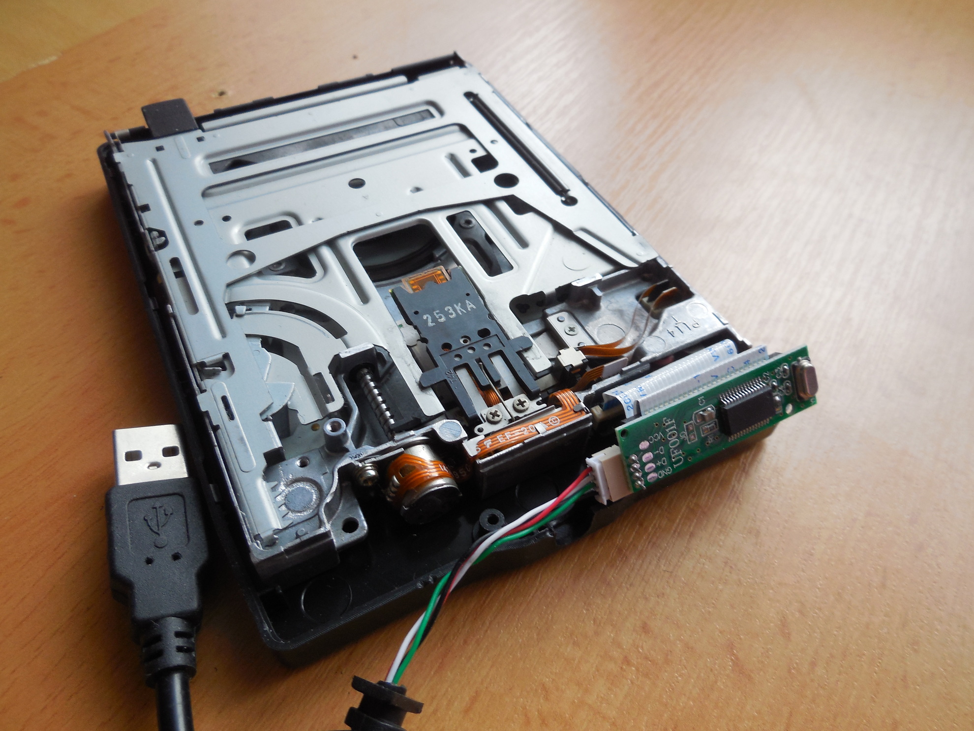 Z hardwarového hlediska není DrawBridge nic složitého - základem je kompatibilní disketová mechanika a Arduino (typicky model Nano, Pro Mini nebo Uno). Klasická 3,5" mechanika pro PC se připojuje 34-žilovým kabelem (IDC konektor), slimline mechaniky z notebooků mají 26-pinový plochý kabel. DrawBridge vyžaduje přímý přístup k rozhraní mechaniky, takže pokud chcete využít externí USB disketovou mechaniku, je nutné ji otevřít a odstranit původní USB převodník. Prakticky to znamená odpojit malou destičku s elektronikou uvnitř a ponechat jen vlastní mechaniku (s hlavičkou, motory a konektorem). Tu pak přímo napojíte na Arduino podle připraveného schématu. Autor projektu se zaměřil zejména na tzv. slimline USB mechaniky - tedy tenké externí floppy jednotky z notebooků - protože ty jsou kompaktní a běžně dostupné. Do jejich plastového pouzdra se Arduino dá šikovně integrovat, takže výsledkem je opět malá přenosná USB mechanika, jen „chytřejší“. Pro stolní 3,5" mechaniky zase existují jiné varianty, například samostatná krabička mezi mechanikou a PC (s krátkým kabelem a externím napájením 5V).
