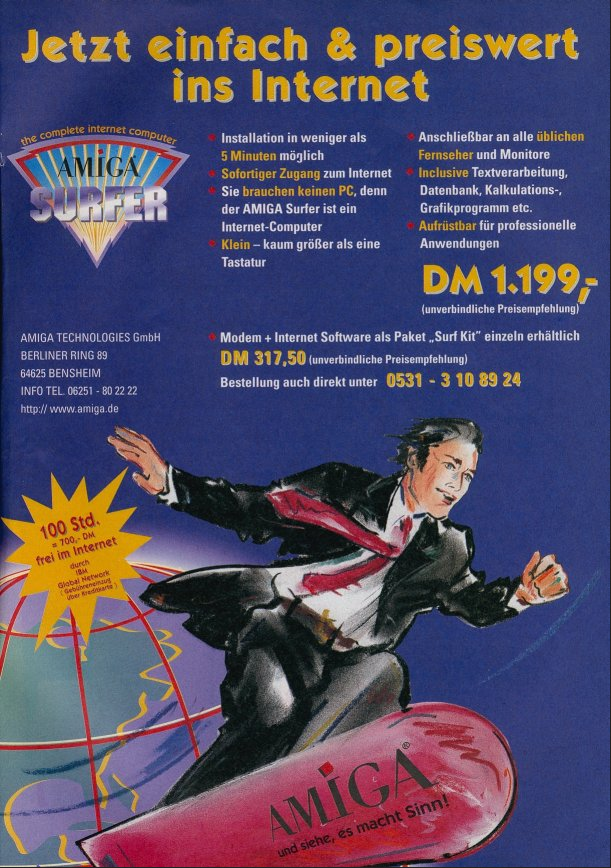 V té době by již měl být na trhu internetovský komplet Amiga Surfer (blíže viz samostatný článek) a premiéru by měla mít tolik očekávaná A1200+. Pravda, takové sliby jsme slyšeli již vloni na podzim, ale tentokrát to snad dopadne lépe.
