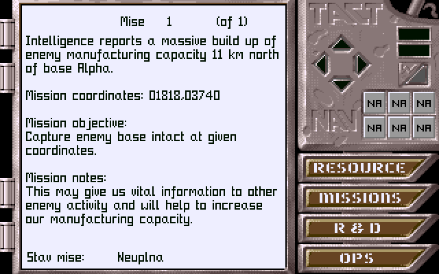 - - taktickou mapu, na které rozděluje jednotky, staví zbraně a plánuje útoky,