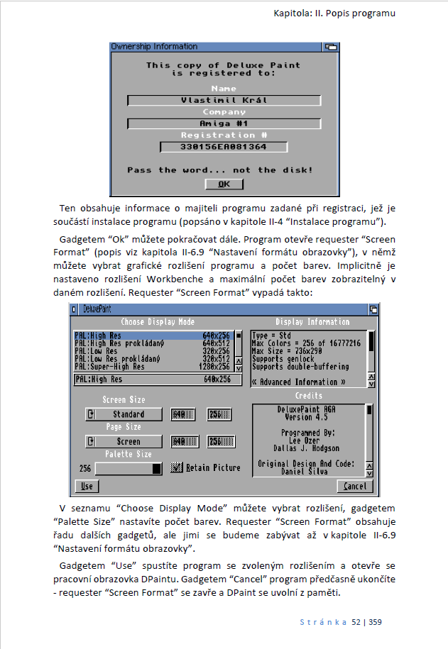 - Teoretický úvod vysvětlující základy počítačové grafiky a specifika grafického systému Amigy (např. Chip RAM, Fast RAM, overscan, režimy HAM6 a HAM8).