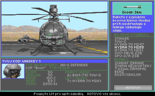 - - Široký výběr vrtulníků a zbraní
