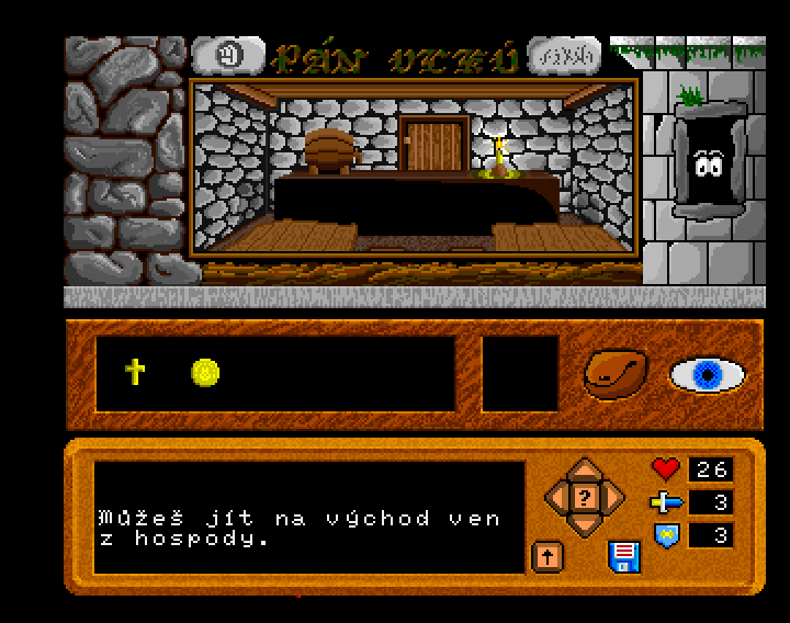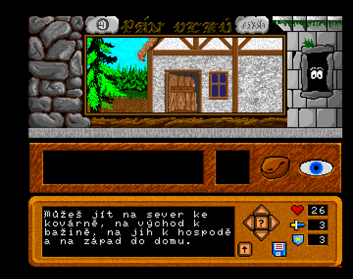 - - Klasická textová adventura ovládaná pomocí příkazů (prozkoumej, vezmi, mluv, použij, jdi)
