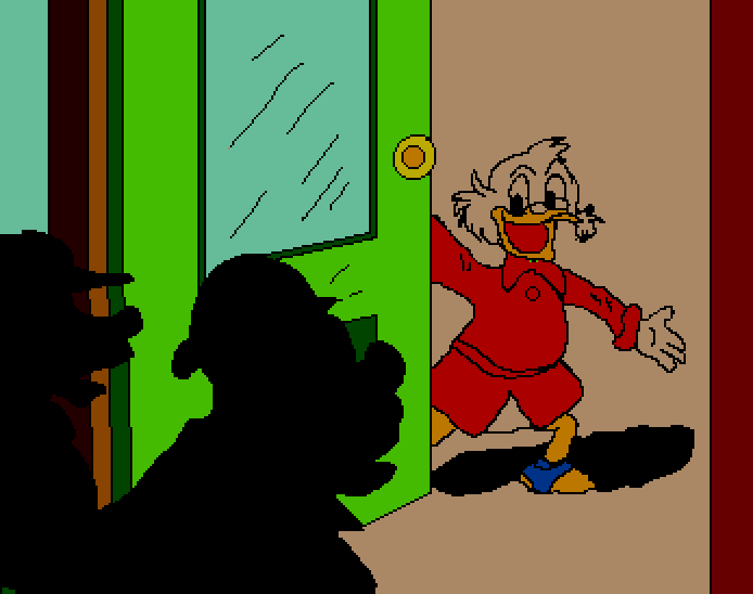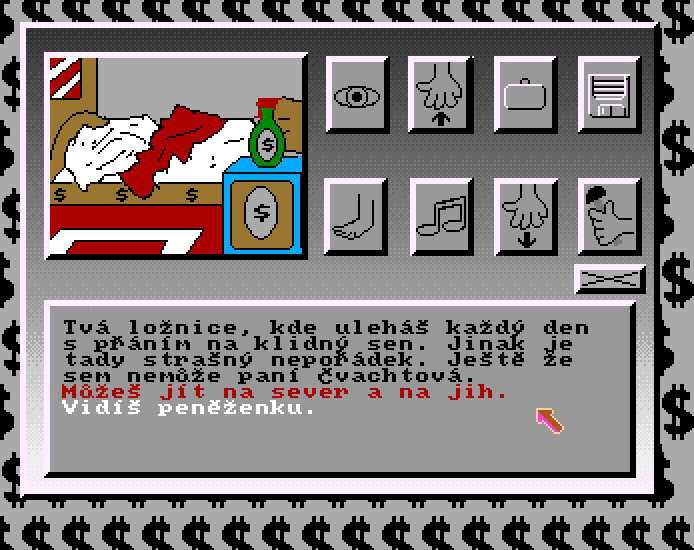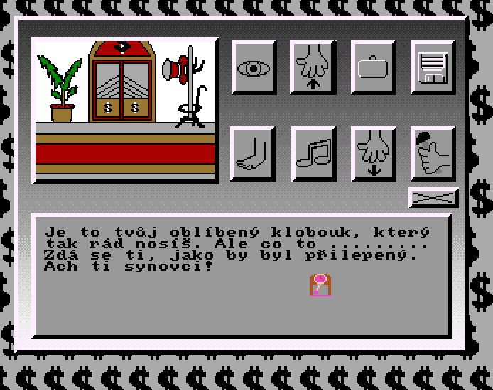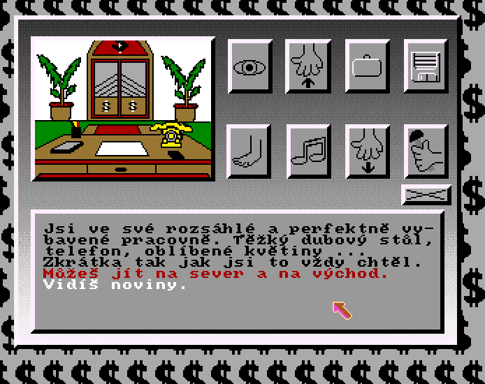 Text je zobrazen ve spodní části obrazovky, grafická scéna nad ním. Na tehdejší poměry působí profesionálně.