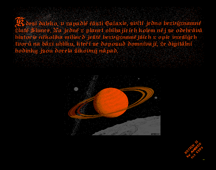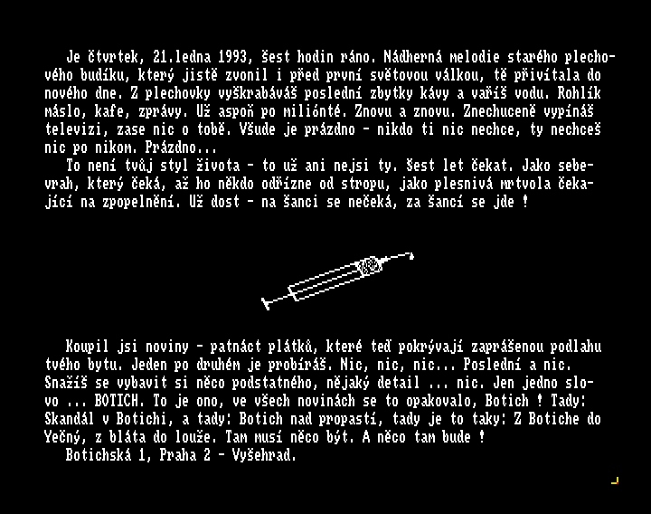 Po hrách jako Drsná cesta a Světák Bob se ve stejném duchu objevila v roce 1993 další originální česká textová hra: „Příšerný Botichský příběh II.“, kterou vytvořil v jazyce GFA Basic Ambeco (Vellux) se zajímavou pomocí (hudba: Cihačka, MadMax). Hra vás vtáhne do školního prostředí gymnázia Botichská, kde se postupně odhaluje přes rituály, absurditu i temnou komedii - a přitom vás bere nevinným startem a baví až do špetky absurdní hrůzy.