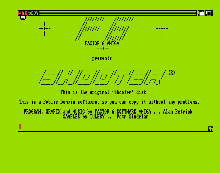 Rok 1995 přinesl na Amigu celou řadu experimentálních a osobitých herních projektů. Jedním z nich byl i „Shooter“, malá, ale překvapivě chytlavá střílečka od Alana Petříka alias Factor6. Hra, která vznikla během pouhých dvou týdnů, je přímočará, syrová a ve své jednoduchosti nečekaně zábavná.