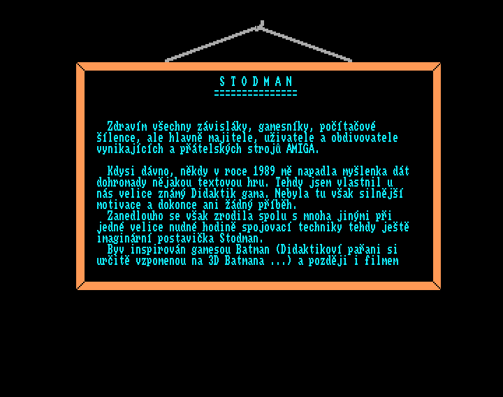 Hra „Stodman“ patří mezi ty české textové adventury, které si prošly vývojem spolu s platformami - od 8-bitových strojů až po 16-bitovou Amigu. Jejím autorem je Jan Lonský, který ji původně vytvořil již v roce 1992 pro Didaktik Gama, a o tři roky později ji přepsal do Amosu pro Amigu.