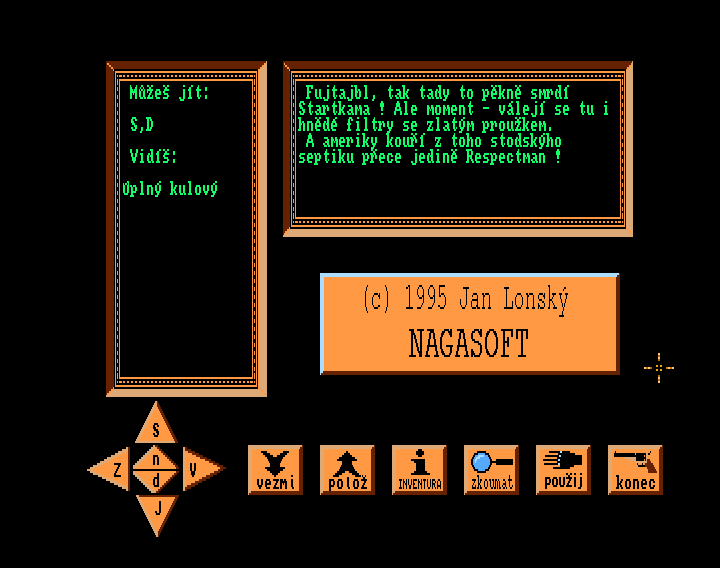 - - Hra využívá klasického textového parseru v češtině (např. „vezmi předmět“, „jdi sever“ apod.),