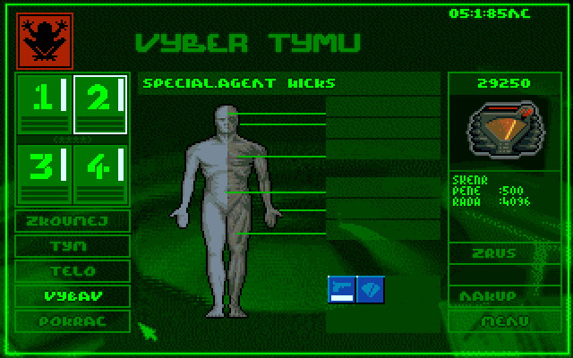 - - Možnost upgradovat agenty kybernetickými implantáty